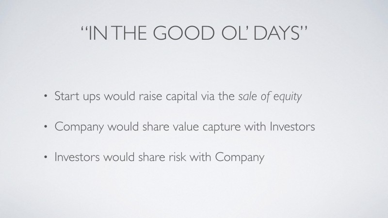 A company raising capital, especially a business that is looking to capture value in a market, should be sharing that value capture with the investors.