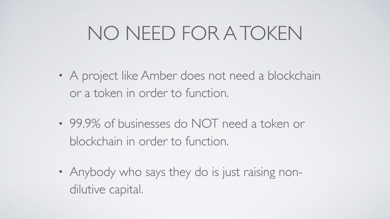 A project like Amber does not need a “Blockchain” or “Token” to function.