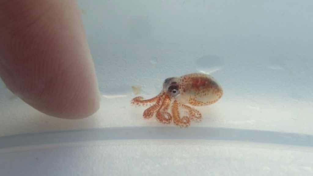 Scientists in Hawaii discover a tiny baby octopus on plastic marine debris while conducting coral reef monitoring. It is so small that it’s just the size of a pea.