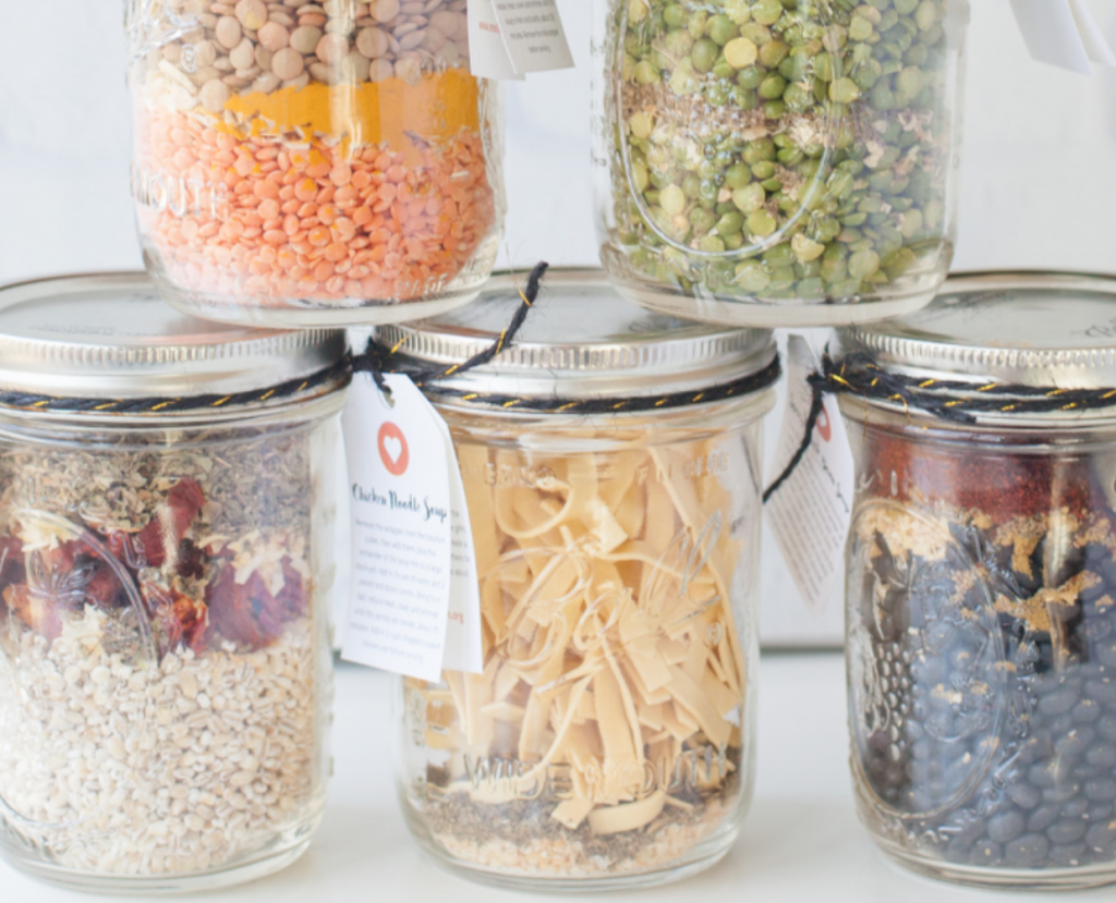 TIP: All of these soup recipes will be placed in a clean glass jar! Remember to reuse the ones you have around the house rather than buying new! Try to buy the ingredients in bulk to avoid extra waste!